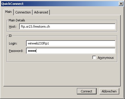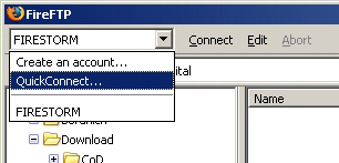 Wenn Sie z.B. den Firefox-Browser mit dem Addon FireFTP verwenden, können Sie über QuickConnect mit den rechts abgebildeten Zugangsdaten auf das Konto zugreifen.
